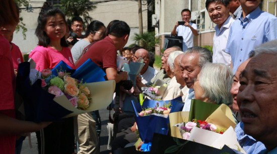 活动正值教师节前夕,两院年轻教师党员和学生党员共同向两校退休教师代表敬献鲜花,表达对他们崇高的敬意和节日的祝福。大家兴致勃勃地参观了安徽科技学院。