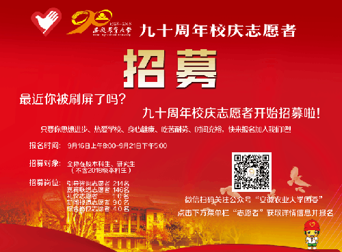 据悉,本次校庆90周年志愿者招募工作采用校团委微信公众平台线上报名的方式面向全体在校生(不含2018级本科生)中开展,自通知发布以来,共有2056人报名,经过个人资料海选、集中面试、学院审核、分岗位遴选等环节,将招募志愿者500名,参与到校庆各项活动的组织、接待、保障和服务工作中去。