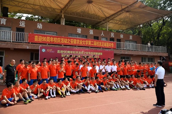 本网讯 秋高气爽,安农校园一片喜庆祥和。10月13日,喜迎90周年校庆活动之校友足球邀请赛暨安徽农业大学第二届足球嘉年华活动在第一运动场上演,往届校友足球队员重回母校,用这种特别的方式向母校90华诞献礼。