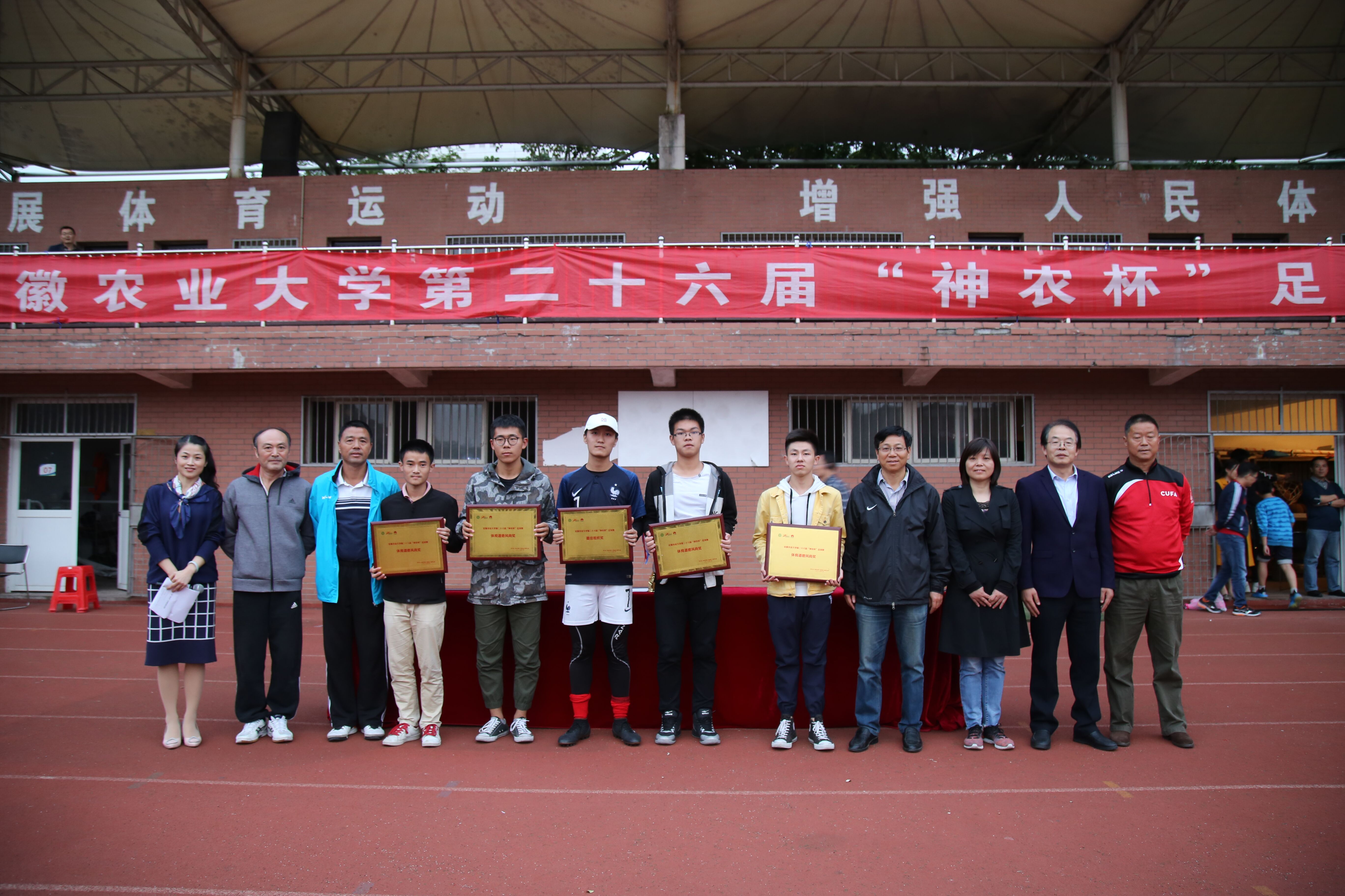 今年“神农杯”足球赛作为我校庆祝建校90周年团学活动“青春安农”子活动之一,自9月12日开赛以来,来自16个学院的球队经过一个多月的激烈角逐,为我校师生献上32场精彩的比赛,以健康向上的精神风貌向学校90周年华诞献礼。最终,研究生院代表队成功卫冕本届“神农杯”足球赛的冠军,林学与园林学院代表队获得亚军,茶与食品科技学院代表队和理学院代表队分别获得本次比赛的第三、四名。理学院代表队获得最佳组织奖。植物保护学院代表队、动物科技学院代表队、资源与环境学院代表队和外国语学院代表队获得体育道德风尚奖,研究生院和平同学和翟克清同学分获“最佳射手”和“最有价值球员”称号。