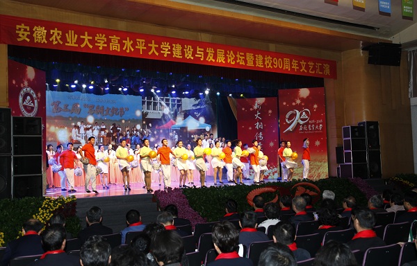 论坛结束后,进行了“奋进新时代 共筑安农梦”建校90周年师生文艺汇演。整场演出精彩纷呈,激情澎湃,既体现了校友和师生们对母校的深切感谢与美好祝愿,又展示了学校90年来艰苦奋斗、开拓创新所取得的辉煌成就。(党委宣传部)