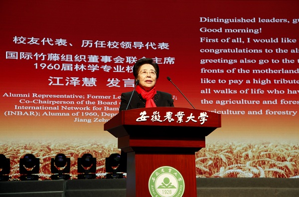 江泽慧在致辞中表示,作为一名曾经长期在农大学习、工作、生活过的校友、老师、校长和书记,为学校所取得的辉煌成就感到由衷的高兴和自豪,也对学校的未来发展充满信心。希望母校能够以90周年校庆为契机,坚持社会主义办学方向,以凝聚人心、完善人格、开发人力、培育人才、造福人民为工作目标,以更高远的历史站位、更宽阔的国际视野、更深邃的战略眼光,抓住机遇、超前布局,加快发展、乘势而上,把学校建设成为农林科技创新的发源地和农林科技成果的转化基地,为我国农林事业培养出更多优秀高素质人才,创造出更多更新的农林科技成果,为实现中华民族伟大复兴的中国梦做出更大的贡献。