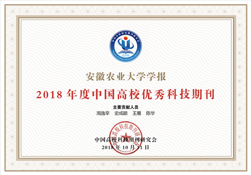 本网讯 11月5日至7日,中国高校科技期刊研究会第22次年会在重庆召开,来自全国各地的600余位高校科技期刊编辑参加此次会议。会议发布了2018年度“中国高校杰出•百佳•优秀科技期刊”遴选结果,共遴选出“中国高校杰出科技期刊”24种,“中国高校百佳科技期刊”120种,“中国高校优秀科技期刊”247种。《安徽农业大学学报》在本次评比中被评为“2018年度中国高校优秀科技期刊”。(科技处、学报编辑部)