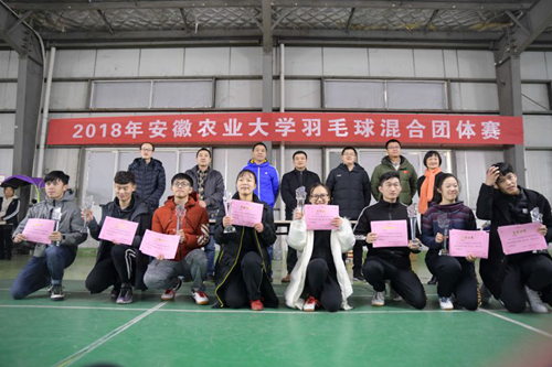本网讯 我校2018年羽毛球混合团体赛于12月8日、9日在第三运动场顺利开战,全校16个学院组队报名参赛。队员之间精诚合作、顽强拼搏,最后植保学院、经管学院、轻纺学院获得第一、二、三名;资环学院、动科学院、工学院、园艺学院、研究生院获得第四至八名。学校相关职能部门负责人出席闭幕式并为获奖运动员颁奖。
