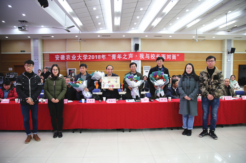 “作为校长,我又如约来到现场,这是我第四次参加面对面活动”,“尽管今天气温很低,但是屋里很温暖,这种温暖体现在作为一名校长,能有这样的机会与同学们面对面的交流,这是难得的机会,我非常珍惜”,“今年是学校建校90周年,在校庆的各项活动当中,广大同学积极参与、鼎力支持,为校友、来宾展示了我们安农学子的精神与风貌。我也代表学校向广大同学对学校的大力支持和参与表示真心的感谢!”真挚而又充满激情的开场白赢得在场同学热烈的掌声。