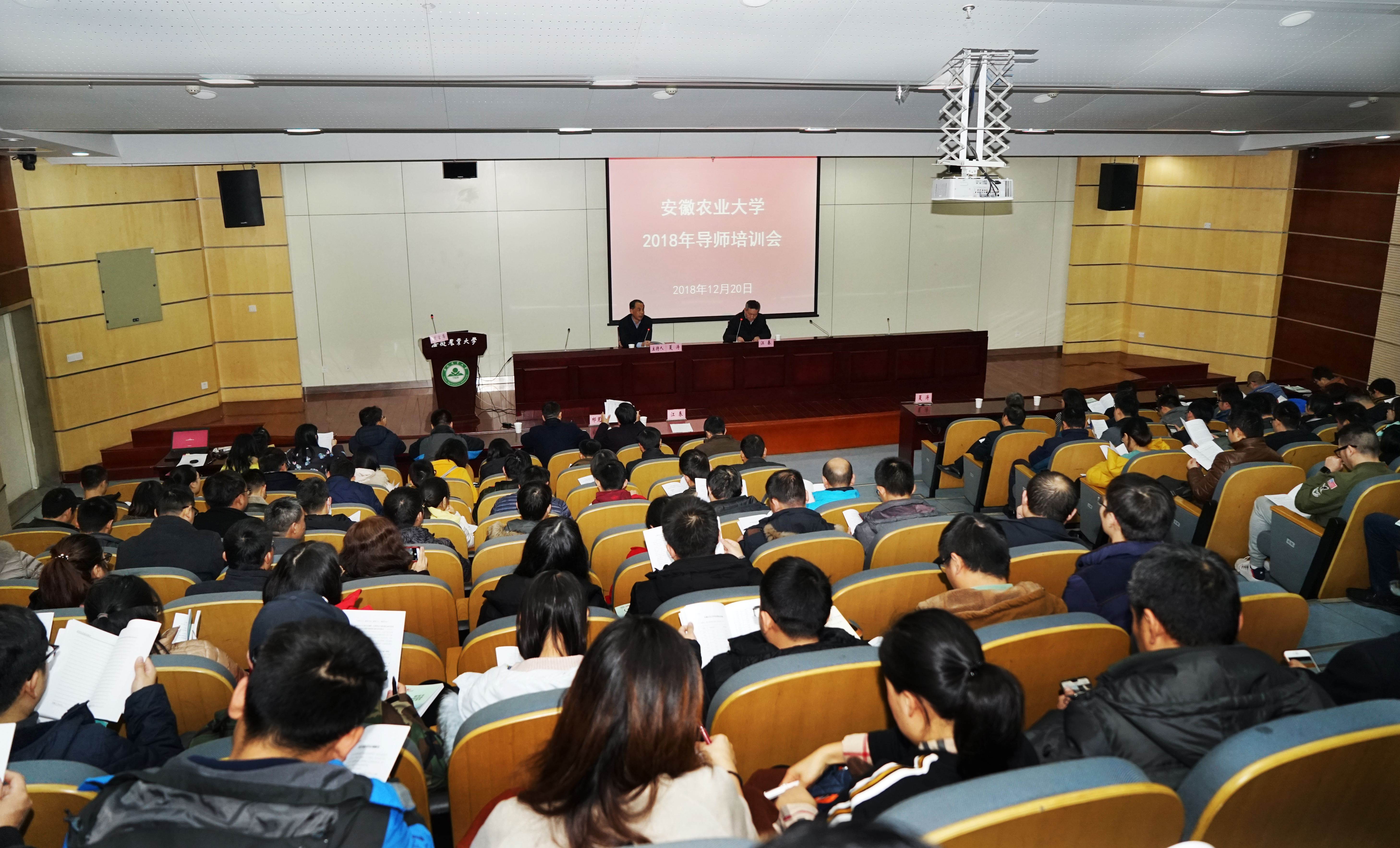 本网讯为进一步加强研究生导师队伍建设,提高研究生培养质量,全面贯彻落实教育部《关于全面落实研究生导师立德树人职责的意见》文件精神,12月20日下午,我校在图书馆2号报告厅召开研究生导师培训会。校党委书记江春出席会议,副校长夏涛主持会议,近3年新增导师及新进博士、培养学院及学位点负责人、研究生督导组组长、研究生秘书以及研究生处全体人员等200余人参加了会议。