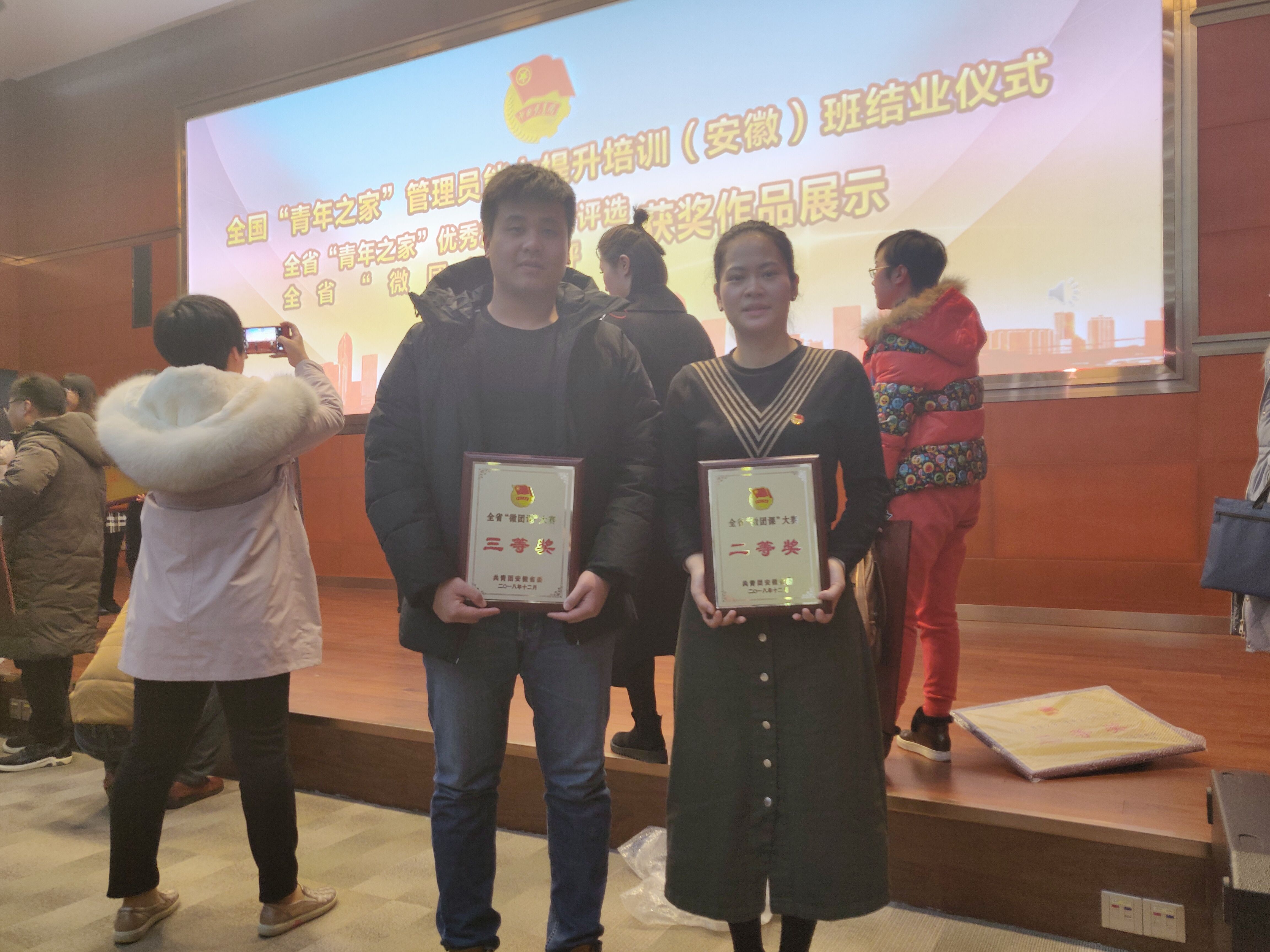 本网讯 近日,由共青团安徽省委主办的全省首届“微团课”大赛决赛在合肥举行。我校园艺学院团委负责人赵婷老师、工学院团委负责人许曲阳老师从全省452位参赛选手中脱颖而出,与进入决赛的30名选手同台竞技,分获二、三等奖。我校获优秀组织奖,是全省两家获奖高校之一。