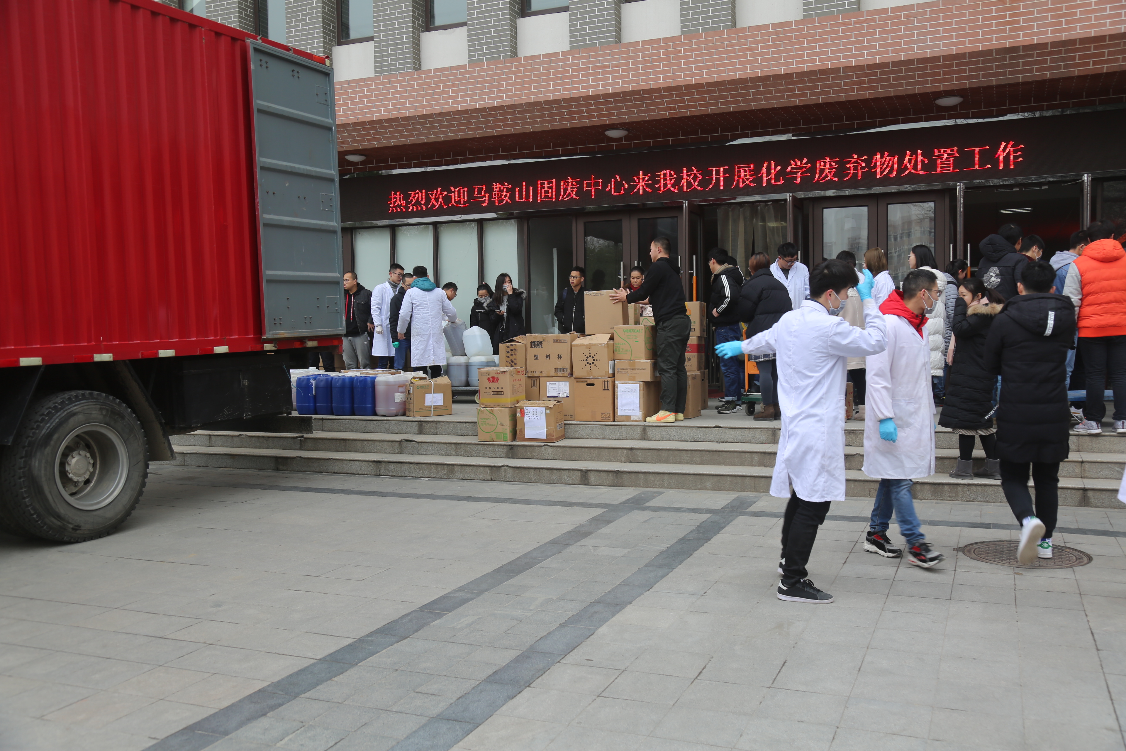 为消除实验室化学废弃物的安全隐患,切实保障全校师生与校园环境安全,确保师生员工过一个欢乐、祥和的春节,国有资产管理处面对化学废弃物难以处置问题,多渠道多途径联系有处置资质的公司,精心组织安排,分批分类开展化学废弃物的转运处置工作。