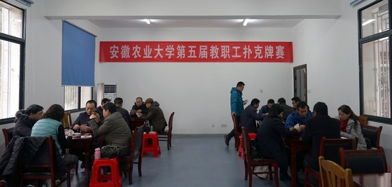 本网讯我校第五届教职工扑克牌比赛经历了六轮47场的激战,于1月10日圆满结束。工学院B队荣获冠军,信息与计算机学院A队获得亚军,理学院A队和体育部B队收获第三名,体育部A队、实业公司A队、人文社会科学学院B队、实业公司B队并列第五名。本次比赛共有25个部门工会的48对选手参加。