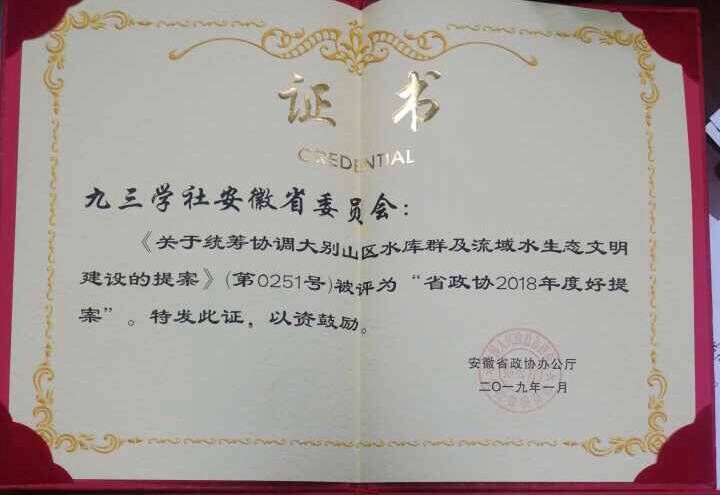 本网讯 近日,省政协召开了十二届二次会议提案宣传工作对接会,会上公布了2018年度好提案,我校九三学社社员、工学院教师周婷执笔的《关于统筹协调大别山水库群及流域水生态文明建设的提案》入选。十二届政协提案工作以高质量发展为主线,每年确定一个主题,2018年为“提案质量年”。本次年度好提案是从省政协十二届一次会议以来立案的1009件提案中遴选出30件,周婷执笔的提案在2018年受到省政协副主席牛立文批示。(九三学社安农大基层委 通讯员:何小佳)
