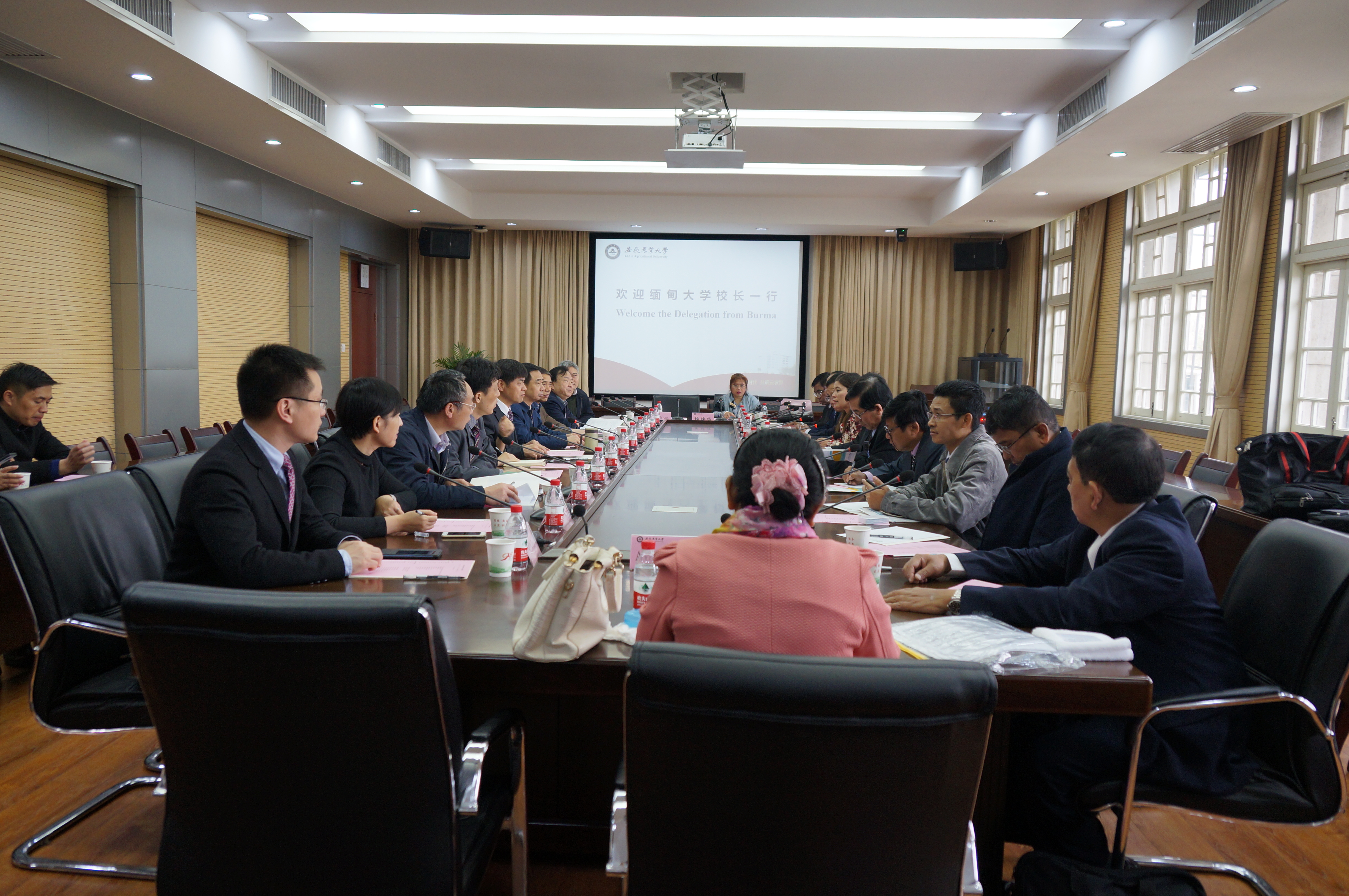 座谈会上,副校长马传喜代表学校对吴觉刷梭一行来校交流表示热烈欢迎,并介绍了我校基本情况。随后,缅甸校长代表团成员简要介绍了各自学校的特色,双方就合作的可能性进行了探讨,并就学生交换、教师交流、科研合作等方面达成了初步合作意向。校教务处、科技处、研究生院、国际交流合作处以及农业园管理中心的主要负责人参加了此次会谈。