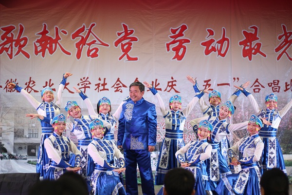 本网讯4月26日下午,服务学校的社会企业庆“五一”合唱比赛,在欣苑食堂四楼大学生活动中心举行。校党委常委、副校长韩军出席比赛,相关部门负责人,服务学校的食堂、物业、保安公司十个公司负责人参加比赛。十家社会企业的600名员工参加本次比赛。
