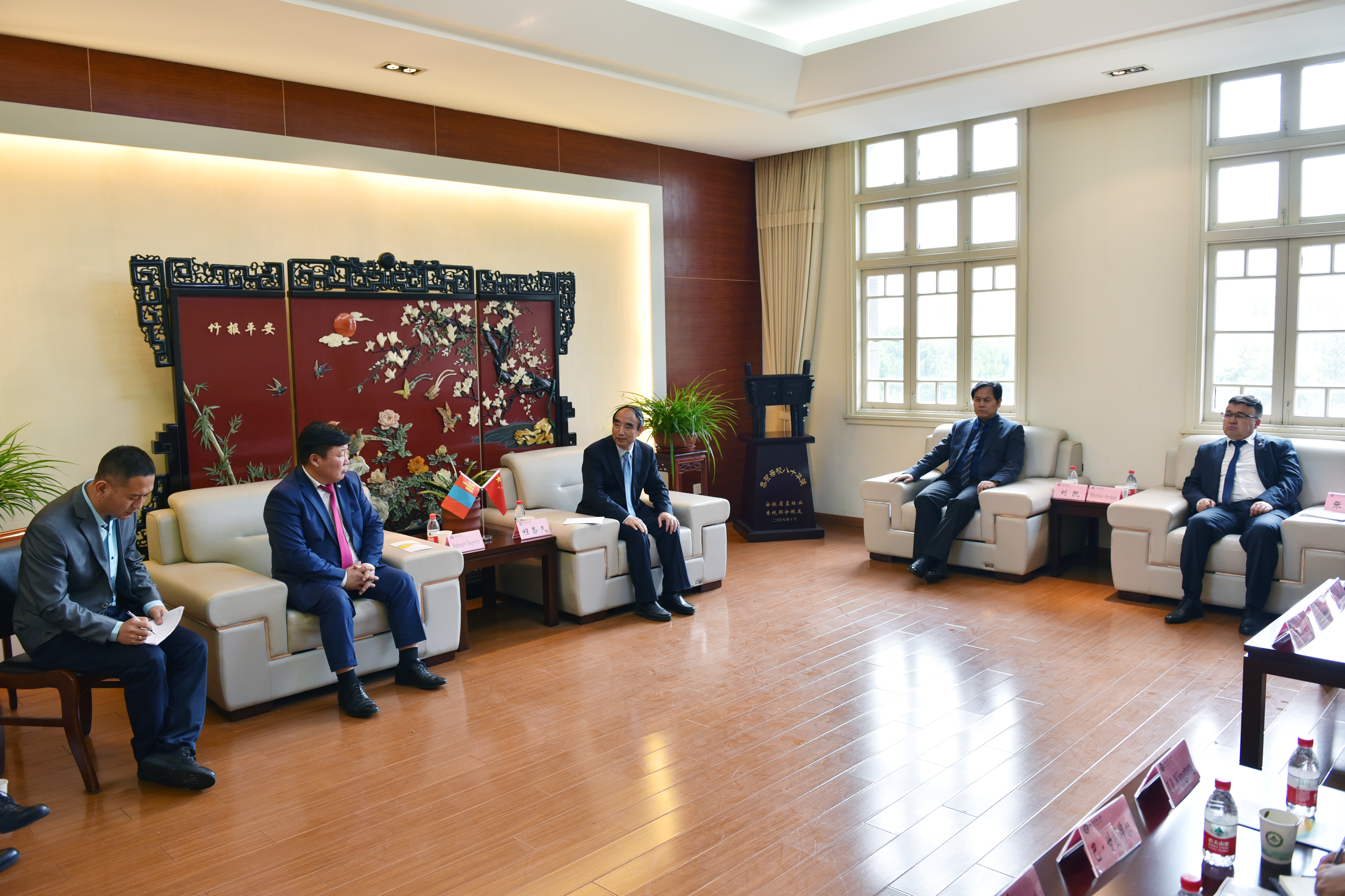 本网讯 4月29日下午,蒙古国科布多省省长巴﹒都古尔加普一行十人来我校访问,校长程备久在勤政楼接待室会见了代表团一行。