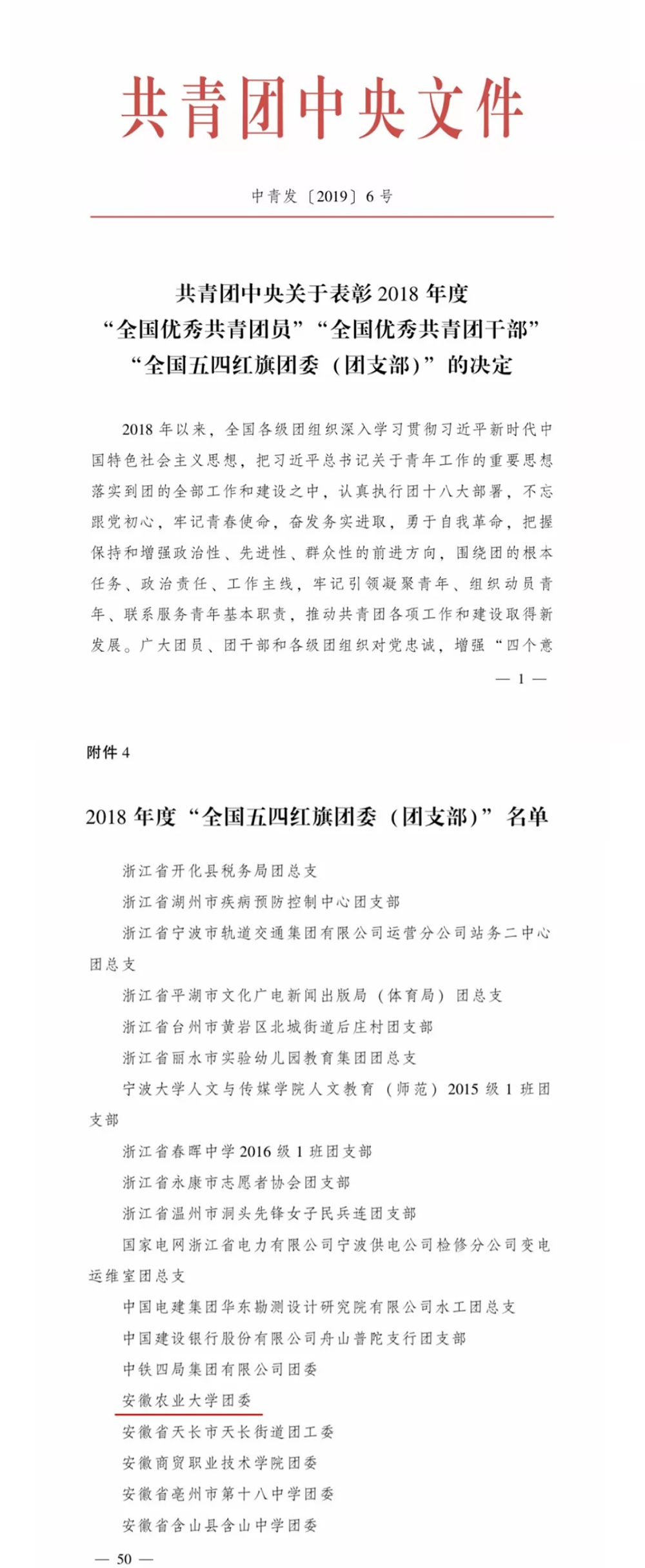 本网讯 “五四”青年节前夕,共青团中央发布关于2018年度“全国优秀共青团员”“全国优秀共青团干部”“全国五四红旗团委(团支部)”的表彰决定,其中共授予全国500个基层团组织“全国五四红旗团委(团支部)”称号,我校喜获此项荣誉。