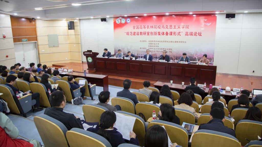 安徽省高校思想政治理论课教学指导委员会主任、安徽中医药大学党委书记王先俊应邀作了“深入学习贯彻习近平总书记3·18重要讲话精神,着力推进思政课的改革创新”的主题报告。中国农业大学、华中农业大学、南京农业大学、西北农林科技大学、福建农林大学、山东农业大学、湖南农业大学、沈阳农业大学、云南农业大学、上海海洋大学、安徽农业大学等高校马克思主义学院负责人分别就规范马克思主义学院教研室建设、强化思政课集体备课作了主题发言。与会专家学者还围绕“规范建设教研室创新集体备课形式”论坛主题分组进行了深入研讨交流。大家一致认为,思想政治理论课是落实立德树人根本任务的关键课程,思政课教师责任重大、使命光荣。规范教研室建设,创新集体备课形式,是高校思政课教师义不容辞的时代使命。