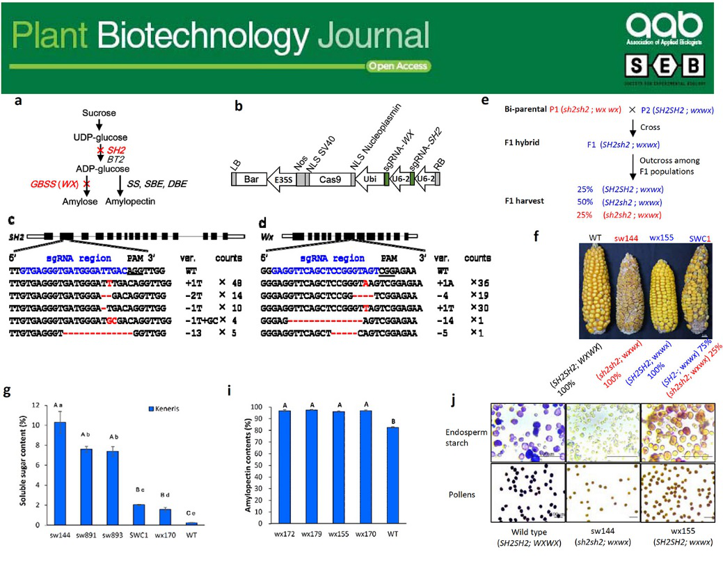 近日,我校与中国农业科学院作物科学研究所合作,利用基因编辑技术创制超甜、糯与超甜糯复合型鲜食玉米育种技术,该研究克服了传统超甜与糯性玉米育种中仅通过回交导入少数已发现的自然突变的局限,并同时解决了同一代谢途径中上游基因对下游基因上位性效应对育种选择的困扰,为高效培育超甜玉米、糯玉米、以及甜糯复合型玉米品种提供了新的技术策略,相关成果以“Super-sweet and waxy: meeting the diverse demands for specialty maize by genome editing” 为题发表于国际主流学术生物技术期刊《植物生物技术杂志(Plant Biotechnology Journal)》上。