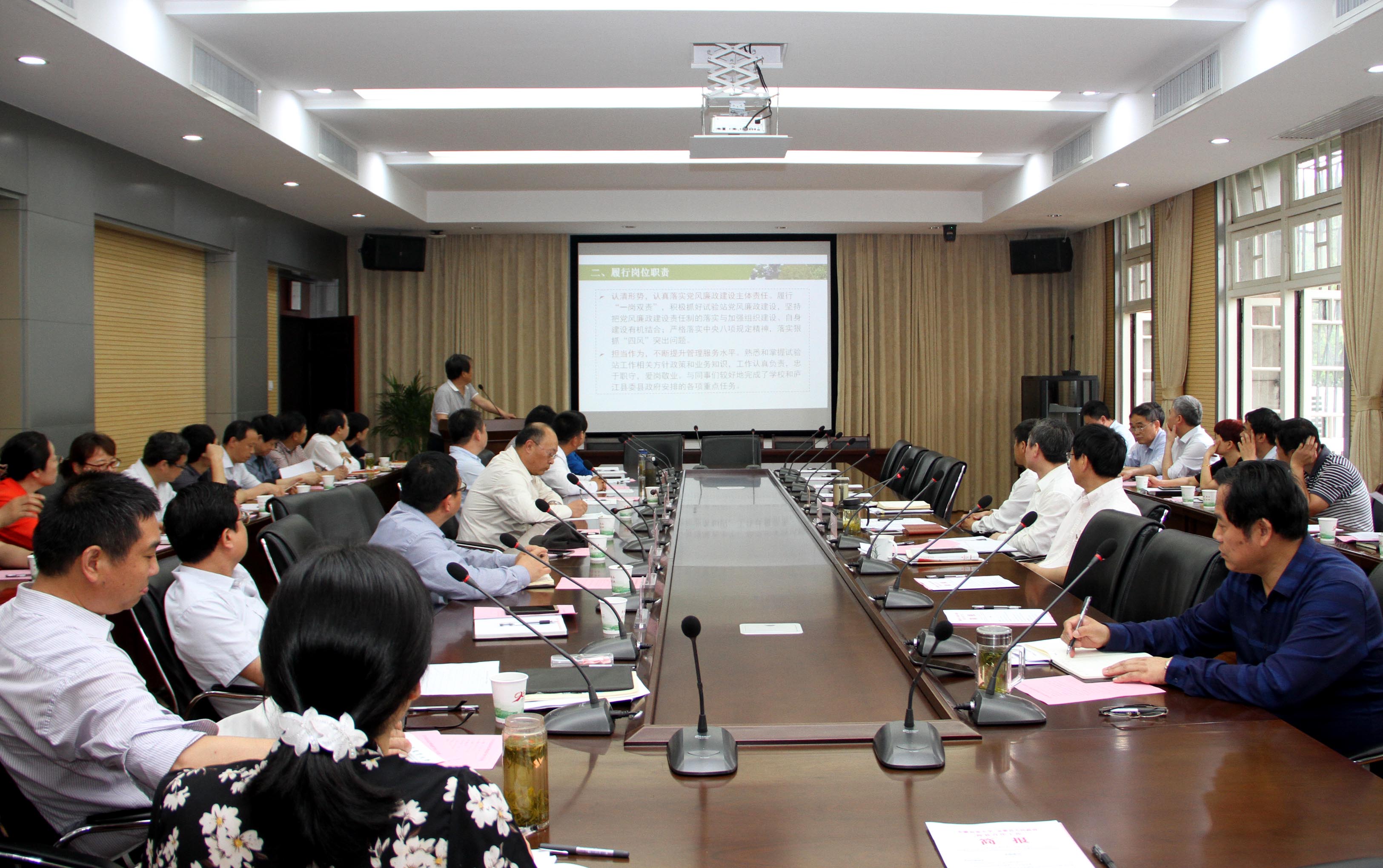 又讯 5月21日上午,江春在第一会议室主持召开综合试验站站长任期届满考核工作汇报会,校党委副书记裴树东,纪委书记陈文兵出席会议。会上,四个考核组组长分别汇报了站长考核情况,并对综合试验站下一步的建设和发展进行了研讨。