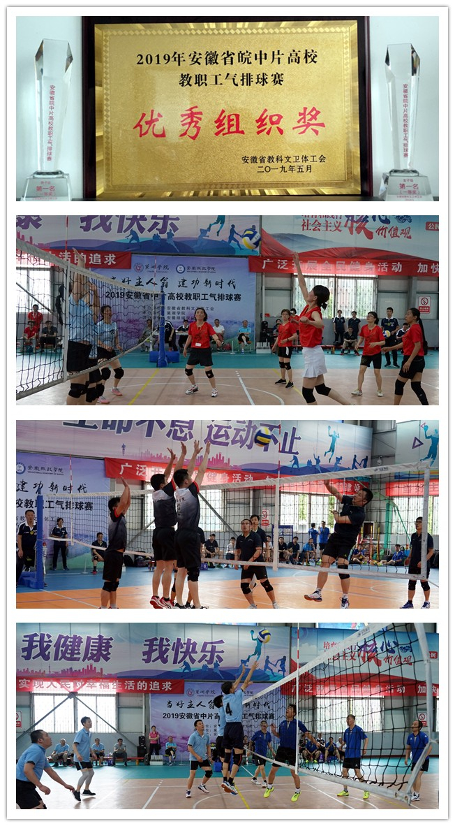 在为期两天的比赛中,我校代表队克服伤病等不利因素的影响,团结一致、顽强拼搏,赛出了风格,赛出了水平。在男子组的比赛中,我校代表队力战群雄,以不失一局的赫赫战绩蝉联冠军,我校女子组代表队面对强手经过艰苦鏖战,同样以不失一局的战绩首次荣获冠军。我校男、女代表队同时获得参加2019年安徽省高校教职工气排球赛暨全国高校教职工气排球赛选拔赛的参赛资格,下一站将代表中片高校赴蚌埠参加比赛。