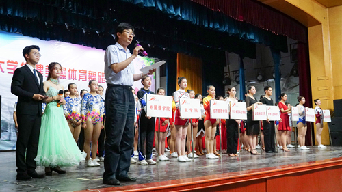 本网讯 6月16日下午,由校体育运动委员会主办,体育部承办,校健与美协会、校大学生舞蹈团协办的2019年健美操体育舞蹈比赛在校大礼堂举行,校党委常委、副校长韩军出席开幕式并致词,教务处、学生处、团委等相关职能部门领导及参赛学院领导参加了活动。