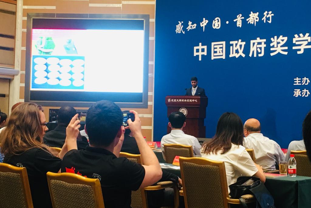 在北京大学举行的博士生论坛上,我校2017级巴基斯坦籍农业昆虫与害虫防治专业博士留学生涂菲克SHAHZAD TOUFEEQ作为安徽省唯一获选代表上台,作来华留学经验分享专题报告。涂菲克从汉语学习、中国文化、科研实践三个方面向教育部及国家留学基金委老师汇报了来我校学习的心得体会。相比多数汇报者的英文讲述,涂菲克的全中文的专题汇报得到老师同学们一致好评。