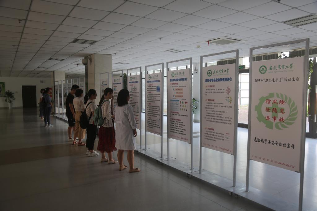 本网讯 根据我校2019年“安全生产月”活动实施方案,国有资产管理处以习近平新时代中国特色社会主义思想为指导,深入贯彻落实党中央、国务院和省委省政府关于安全生产的重大决策部署,结合学校重大风险防范化解工作,以“防风险、除隐患、遏事故”为主题,开展危险化学品安全知识宣传展览活动。宣传活动将在生物科技楼、中西部大楼等教学科研实验场所巡回展览。