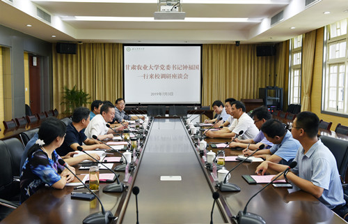 本网讯 7月3日上午,甘肃农业大学党委书记钟福国一行6人来校调研。校党委书记江春主持座谈交流会,校党委副书记裴树东陪同调研。
