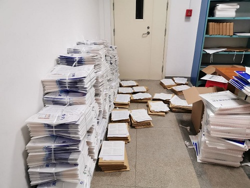 目前,我校2019届毕业生档案已经基本离校。后期,档案馆还将进行EMS信息的网上查询和物流信息截图工作。确保每一份档案成功送达,为传递工作画上完整的句号;物流信息截图将作为证据链永久保存,为今后档案查询提供佐证。(张媛媛 通讯员:刘社文)
