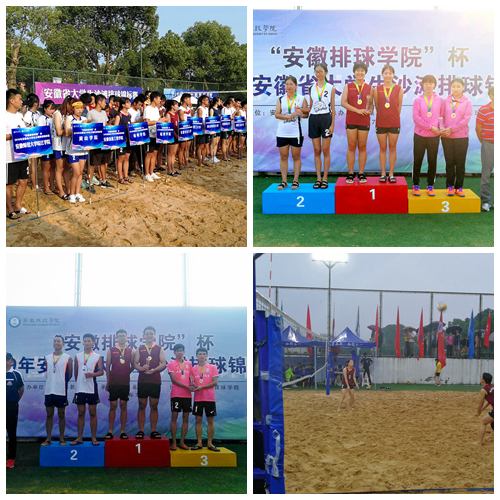 本网讯 7月15日,持续一周时间的“安徽排球学院杯”省大学生沙滩排球锦标赛在巢湖学院落下帷幕。本次比赛由安徽省教育厅主办,巢湖学院承办,来自全省24所高校的64支代表队参加了比赛。我校代表队参加了男子甲组、女子甲组的激烈对决,荣获男子甲组冠军,女子甲组冠军。
