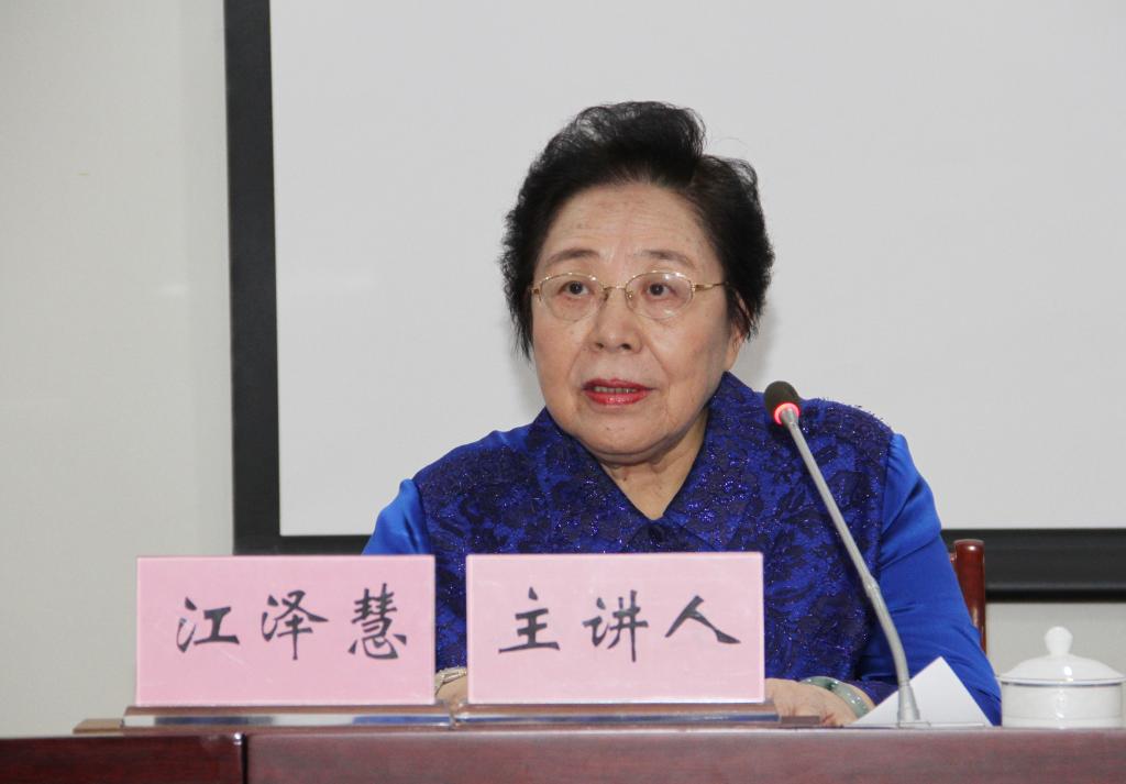 会上,江泽慧向学校捐赠图书。她结合“不忘初心,牢记使命”主题教育、这段时期读原著、学原文、悟原理,继承革命先烈和父辈光荣传统,结合自己的成长经历和从事教育、科研一线工作的实际,从“认真学习、深刻领会习近平总书记在‘不忘初心、牢记使命’主题教育工作会议、中央政治局第十五次集体学习以及中央和国家机关党的建设工作会议上的重要讲话精神”、“继承先烈,不断坚守理想信念、初心使命,终身奉献给伟大的党、伟大的人民”、“教书育人,爱党爱国,培养更多德才兼备的优秀人才,为祖国创新发展奉献终身”等三个方面,讲述了自己的学习体会。