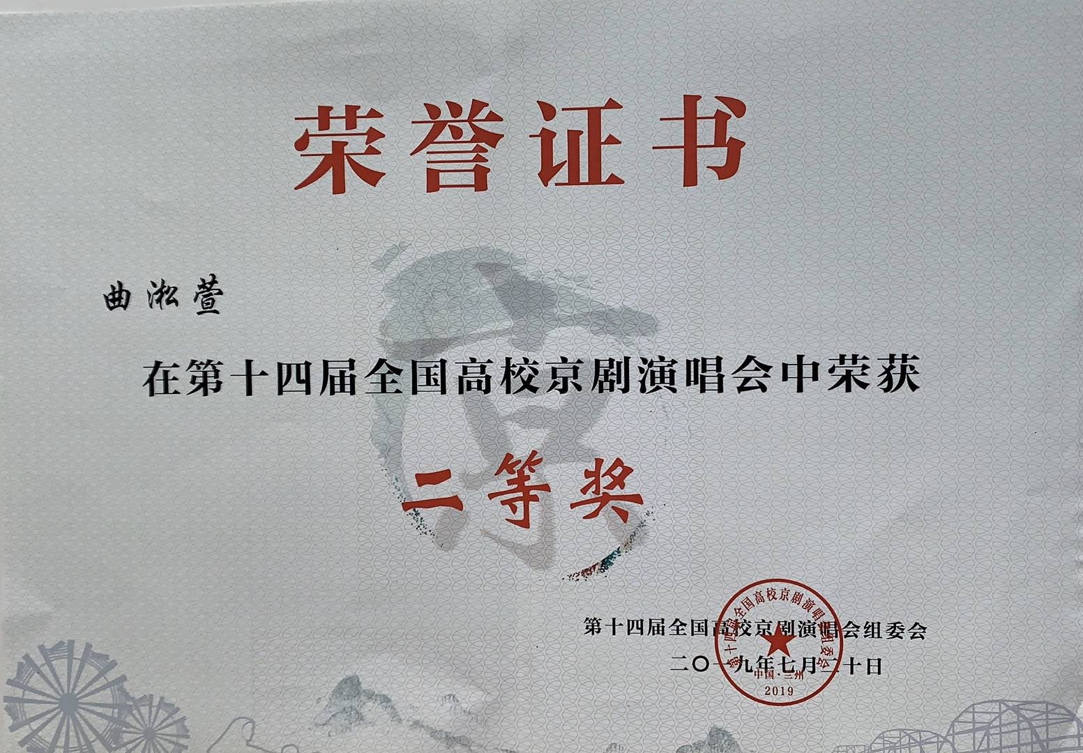 本网讯今年暑期,由中国戏曲表演学会高校京剧委员会、甘肃省兰州市委宣传部主办,兰州广播电视台、兰州职业技术学院、甘肃演艺集团承办的第十四届全国高校京剧演唱研讨会在兰州举行,来自全国90余所高校500余名师生参加演唱比赛和学术研讨。最终,由我校戴晓红、赵俊龙两位老师指导的16级茶学(茶文化与贸易)专业学生曲凇萱,以京剧《白蛇传》选段荣获二等奖。