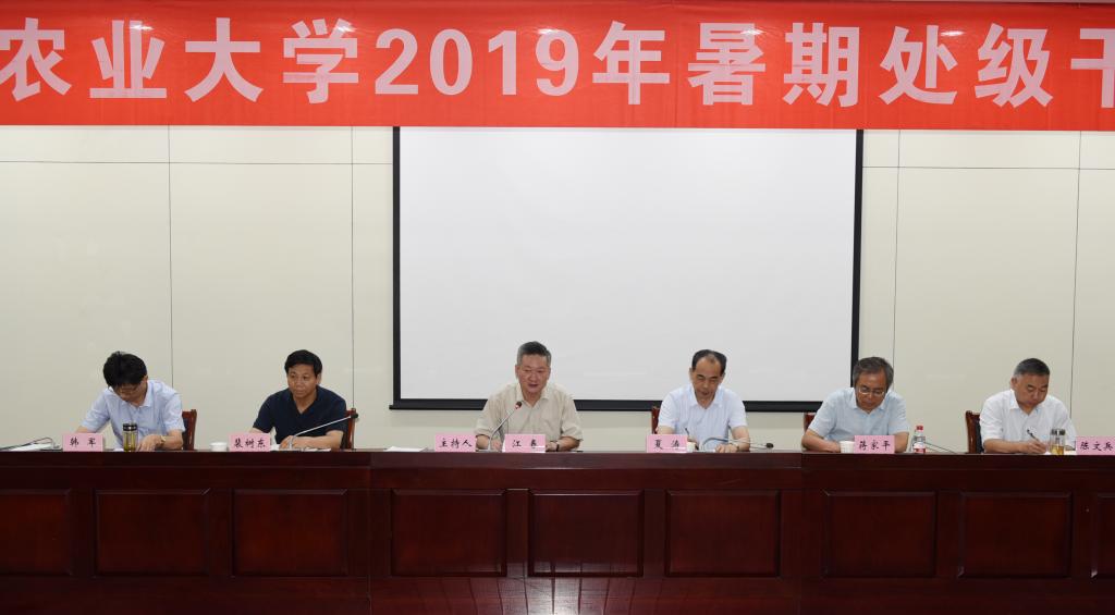 本网讯 8月23日下午,2019年暑期处级干部读书班调研成果交流汇报暨总结会在图书馆第二报告厅举行。校党委书记江春主持会议,校领导夏涛、裴树东、蒋家平、韩军、陈文兵出席会议,全校处级干部参加会议。