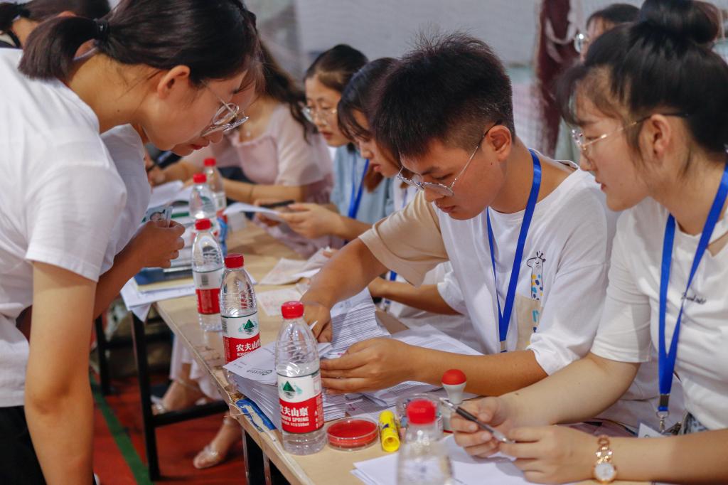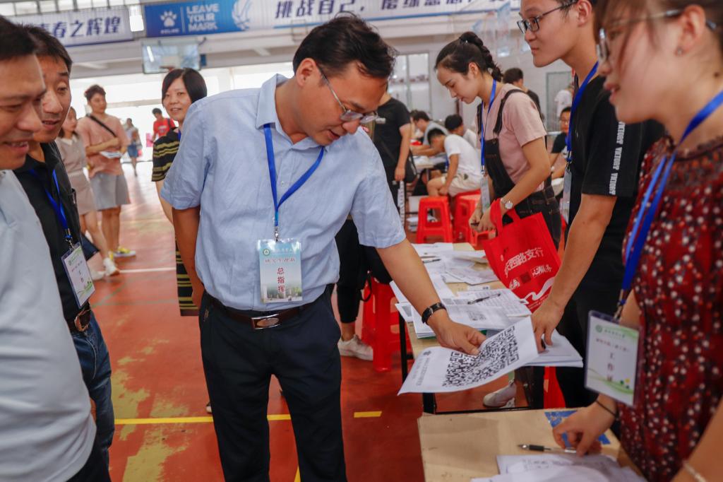 本网讯9月8日,2019级研究生迎新工作在校体育馆顺利进行,校党委常委、副校长操海群到迎新现场检查指导工作。