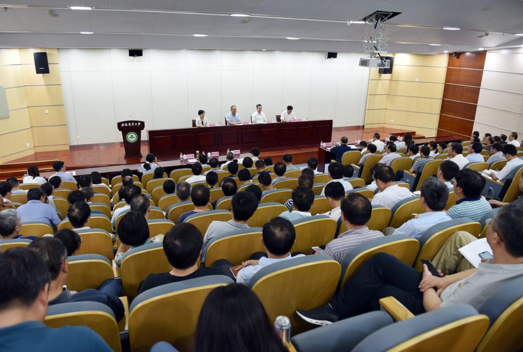 本网讯9月12日,学校召开“不忘初心、牢记使命”主题教育动员部署会。校党委书记、主题教育领导小组组长江春作动员讲话,对全校开展主题教育进行部署。省委第十一巡回指导组组长、省政协民族和宗教委员会副主任刘飞跃作指导讲话。省委第十一巡回指导组副组长、安徽广播电视大学党委委员、副校长,挂任共青团安徽省委副书记、党组成员张敏,以及巡回指导组其他同志到会指导。会议由校党委副书记裴树东主持。