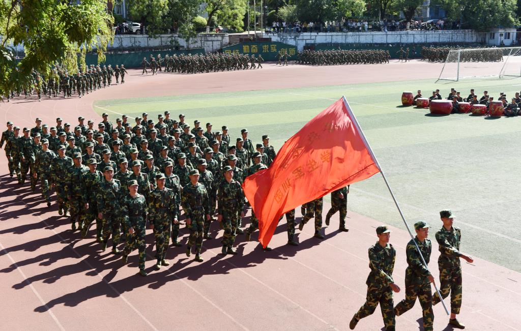 4900余名军训新生接受了检阅,其中由1200余名同学组成的15个分列式方阵进行了会操评比,各方阵军姿整齐划一、精神昂扬奋发,充分展现了集中训练的成果,至此为期14天的新生军训圆满结束。