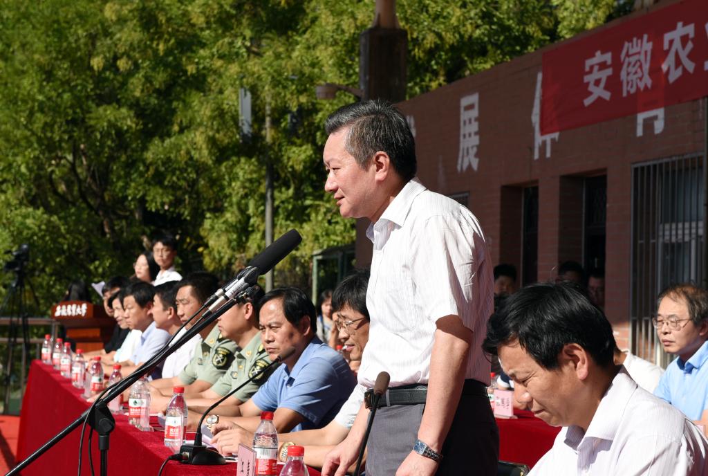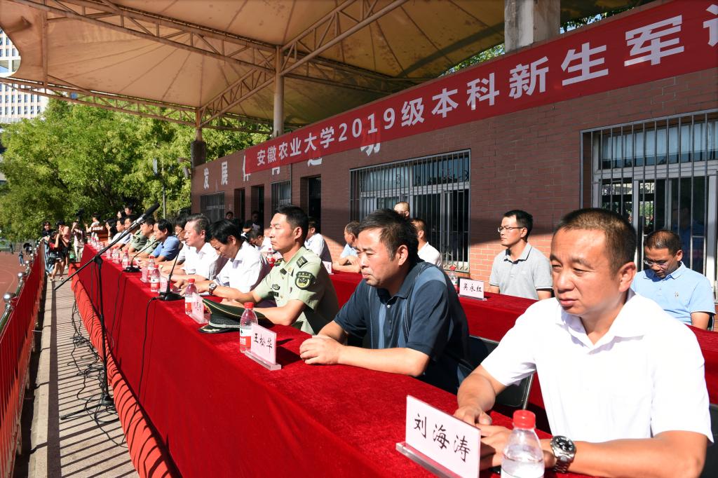 本网讯 9月20日下午,我校2019级本科新生军训分列式暨总结表彰大会在第一运动场举行。校党委书记江春、校党委副书记裴树东、校党委常委、副校长韩军,武警安徽总队机动支队副支队长赵志刚出席会议,军训领导组成员、各学院党委副书记、新生辅导员以及2019级全体新生参加会议。会议由校党委常委、副校长韩军主持。