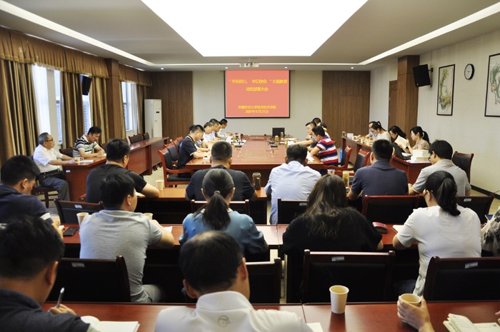 “不忘初心、牢记使命”主题教育时间紧、任务重、要求高。会议要求,全校师生党员要提高政治站位,深刻认识开展主题教育的重大意义。牢固树立“四个意识”、坚定“四个自信”、做到“两个维护”,切实提高开展主题教育的政治自觉、思想自觉和行动自觉,确保主题教育各项任务落地见效;要聚焦目标要求,高标准高质量推进主题教育各项工作。牢牢把握深入学习贯彻习近平新时代中国特色社会主义思想这一主题教育的根本任务,坚持把“守初心、担使命,找差距、抓落实”这一总要求作为相互联系的整体,贯穿主题教育全过程。要加强分类指导,找准开展主题教育的着力点和切入点。将主题教育与人才培养、科学研究、社会服务、文化传承与创新、国际交流合作相结合,以“不忘初心、牢记使命”主题教育为契机,推动学院、部门各项工作再上新台阶。要落实主体责任,确保主题教育取得扎扎实实成效。要精心组织,周密安排,严格落实主体责任,扎实做好督促指导,积极营造良好氛围,把中央和省委的要求落实到每一个支部、每一名党员。要坚决防止形式主义,坚持“两手抓两促进”,不折不扣把各项工作任务做细做实做出成效,以实际成效推动高水平大学建设。