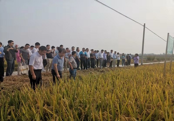 本网讯 9月27日上午,由安徽省农业科学院主办,我校承办的“十三五”国家粮食丰产增效科技创新专项“安徽粮食多元种植规模化丰产增效技术集成与示范”项目水稻试验和示范现场观摩推进会在皖中综合试验站水稻产业联盟水稻示范基地召开,农业农村部项目管理处处长张昭、省科技厅农村处处长姚群、省农科院副院长李泽福、省农业农村厅种植业局局长张韪等出席观摩会。
