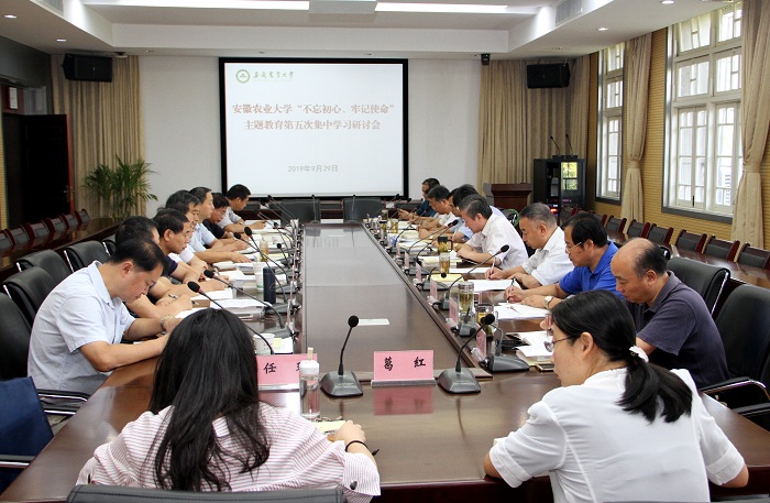 本网讯9月29日,校党委利用一整天的时间,在第三会议室聚焦“不忘初心、牢记使命,做好党员好干部奋斗者追梦人”,开展主题教育第五次集中学习研讨。校党委书记江春主持会议,校领导韩军、陈文兵、操海群以及校党委理论中心组成员参加学习研讨。