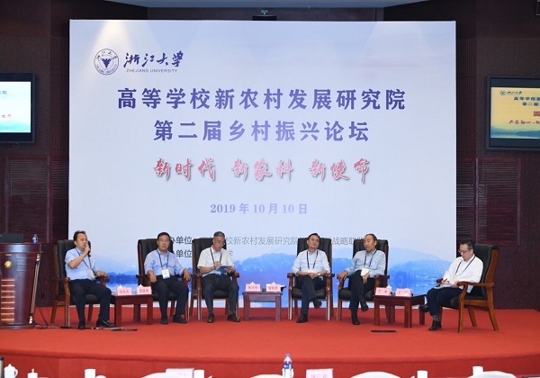 本网讯 高等学校新农村发展研究院第二届乡村振兴论坛于10月10日在浙江大学举行,全国涉农高校领导和学科专家共同探讨谋划高等学校服务乡村振兴战略的思路与举措,浙江大学校长吴朝晖院士,“高等学校新农村发展研究院协同创新战略联盟”专家指导委员会主任、科学技术部原副部长、中国软科学研究会理事长张来武,教育部科学技术司一级巡视员高润生,“拼多多”业务发展副总裁曾怀忆,以及部分涉农高校和相关企业的负责人和专家代表等出席会议,我校副校长操海群、新农村研究院相关工作人员应邀参加了论坛。