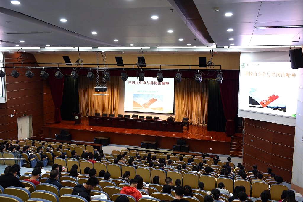 蒋家平从北伐成功到国共合作期间大革命失败,从中国共产党面临解散、投降严峻形势引出井冈山革命根据地建设的历史背景,以大量客观史实为线索带领与会同志重温了井冈山革命斗争的历程。他详细介绍了井冈山革命根据地的基本概况、井冈山革命队伍的复杂性、毛泽东引兵井冈山的历史进程、井冈山斗争时期的经验教训等,用生动的语言展示了以毛泽东同志为代表的中国共产党人创建井冈山革命根据地的艰苦过程和丰功伟绩,向大家阐述了井冈山队伍建设成就。他强调,井冈山精神实质就是坚定执着追理想、实事求是闯新路、艰苦奋斗攻难关、依靠群众求胜利,井冈山精神在新的历史时期仍然具有重大的时代价值。他希望与会同志不忘初心,牢记使命,让井冈山精神在新时代放射出新的光芒。