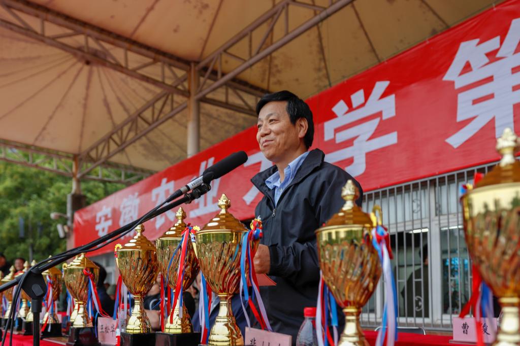 裴树东向在比赛中取得优异成绩的运动员和学院表示热烈的祝贺,向全体裁判员、工作人员、广大志愿者和啦啦队员们表示衷心的感谢。他指出,本届运动会不仅展现了全校运动健儿高超的竞技水平,更展现了学校师生昂扬向上的精神状态,营造了浓郁的校园体育文化氛围。希望广大师生深刻理解体育真谛,积极弘扬体育精神,在日常工作、学习之余,走向操场,参加锻炼,健康身心、强健体魄,以更加饱满的热情,更加坚韧的意志,挑战极限,超越自我。