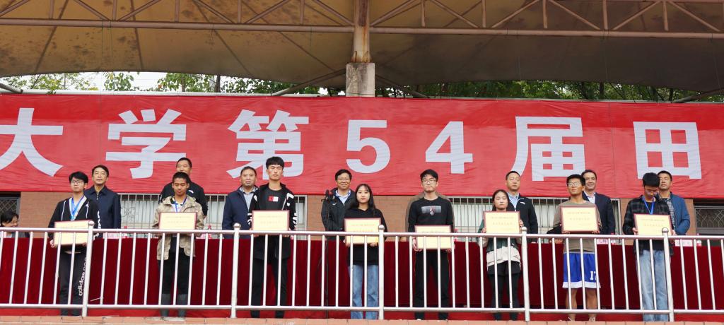 本网讯10月26日下午,第54届田径运动会闭幕。校党委副书记裴树东出席并致闭幕词。校体育运动委员会委员、各职能部门和学院负责同志参加闭幕式并在主席台就座。