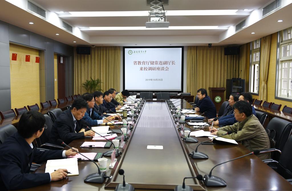 本网讯10月25日,省教育厅副厅长储常连一行来校调研学科建设工作。副校长马传喜、操海群陪同考察了作物抗逆育种与减灾国家地方联合工程实验室,并出席调研座谈会。