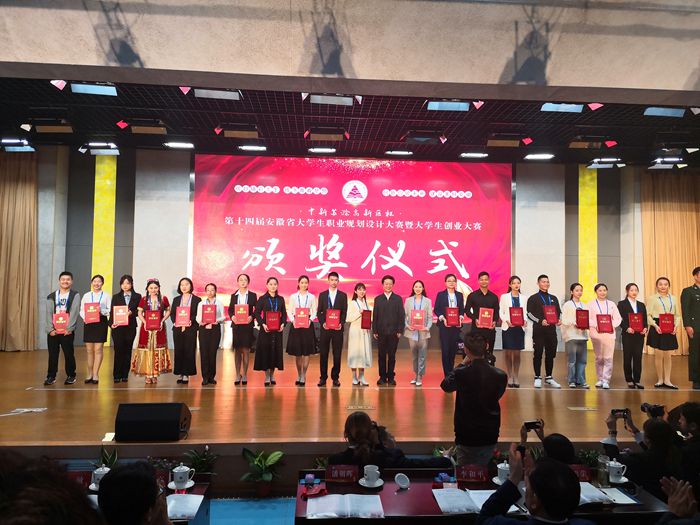 本网讯10月26-27日,由省教育厅、省人力资源和社会保障厅、共青团安徽省委主办的“中新苏滁高新区杯”第十四届安徽省大学生职业规划设计大赛暨大学生创业大赛决赛在安徽师范大学顺利落幕。省政协副主席、省教育厅厅长李和平到会讲话。芜湖市委书记潘朝晖,省教育厅副厅长解平、团省委副书记张敏、省劳动就业服务局局长唐正亮等参加了颁奖典礼。本次大赛是落实省委省政府“创业江淮行动计划”、推进高校创新创业教育改革的重要举措,全省共有104所院校10万多名大学生参赛。经过激烈角逐,我校外国语学院郜言凤同学获得“安徽省大学生职业规划之星(金奖)”,“耘读天下”创业团队获得“安徽省大学生创业之星(银奖)”,学校荣获“最佳组织奖”。