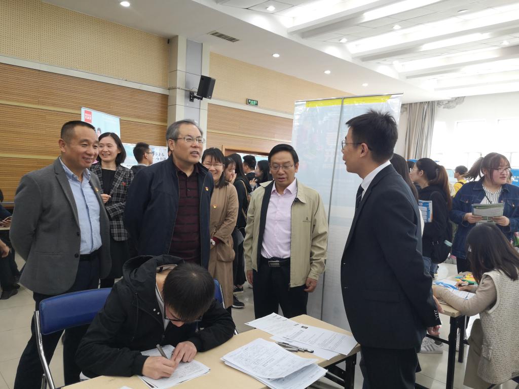 此次招聘会在遴选邀请、组织宣传等各方面得到学校和学院的大力支持。学院领导老师们“不忘育人初心、牢记教育使命”,前期积极推荐优质单位,并在教学中融入优秀公司的经典案例,将同学们的就业意识培养起来,现场指导同学们了解企业文化,把握就业机会。此次招聘单位资质过硬,学生反应热烈,现场互动交流频繁。很多学生与招聘单位达成意向并签订了就业协议书。(徐玉品 通讯员:吴杰)