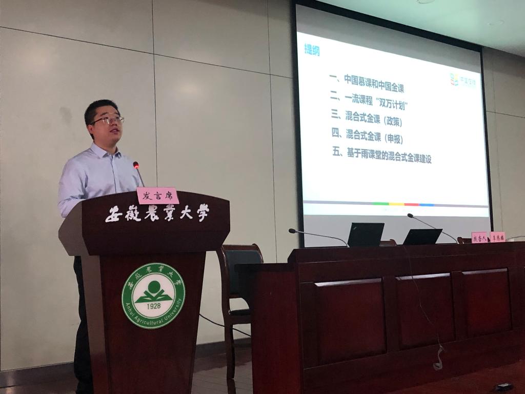 李腾麟在会上分享了中国慕课和中国金课的发展历程,分析了一流课程“双万计划”相关文件要求,解读混合式金课的政策文件和申报要求,介绍了基于雨课堂的混合式金课建设操作方法。最后参会老师就“金课”建设相关问题与李腾麟进行交流讨论。