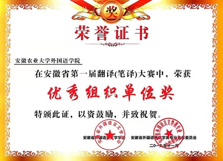 今年首届翻译大赛由安徽省外国语言文学学会和安徽省外国语言文学类专业合作委员会主办,安徽省外国语言文学学会翻译教学工作委员会等承办。大赛分汉译英、英译汉、汉译日、日译汉四个组别,共收到全省40所高校学生参赛译文2000余份,我校学生提交译文206份,在所有高校中居于首位。