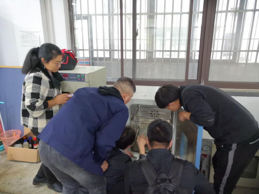 本网讯 为深入贯彻落实“不忘初心、牢记使命”主题教育,增强党员的服务意识,提升服务水平,11月12日,国有资产管理处党支部联合生产企业合肥达斯卡特生物科技有限公司开展主题党日活动,对学校教学、科研各类培养箱设备(生化培养箱、光照培养箱、鼓风干燥箱、人工气候箱等)开展义务维护保养和检测维修工作。