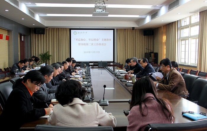 本网讯 11月19日下午,校党委书记江春在第三会议室主持召开“不忘初心、牢记使命”主题教育督导工作第二次会议。校领导夏涛、裴树东、马传喜、韩军、操海群,主题教育领导小组办公室成员单位负责同志、督导组全体成员参加会议。