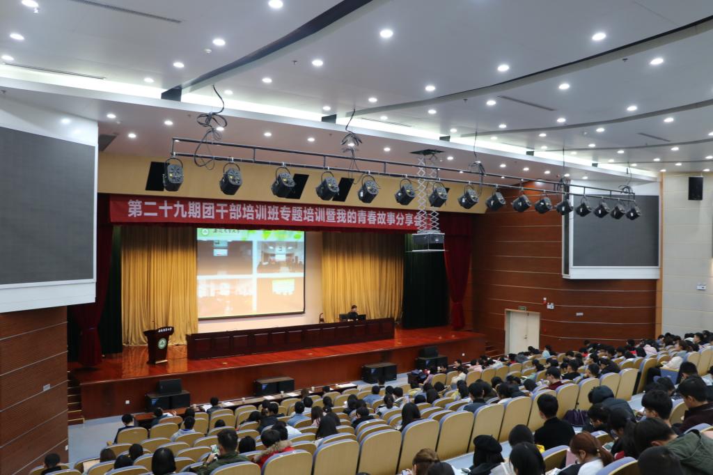 本网讯11月27日下午,我校第二十九期团干部培训班专题培训暨“我的青春故事”分享会在图书馆第一报告厅举行。校团委负责人、各学院团委负责老师以及本期培训班全体学员400余人参加了活动。